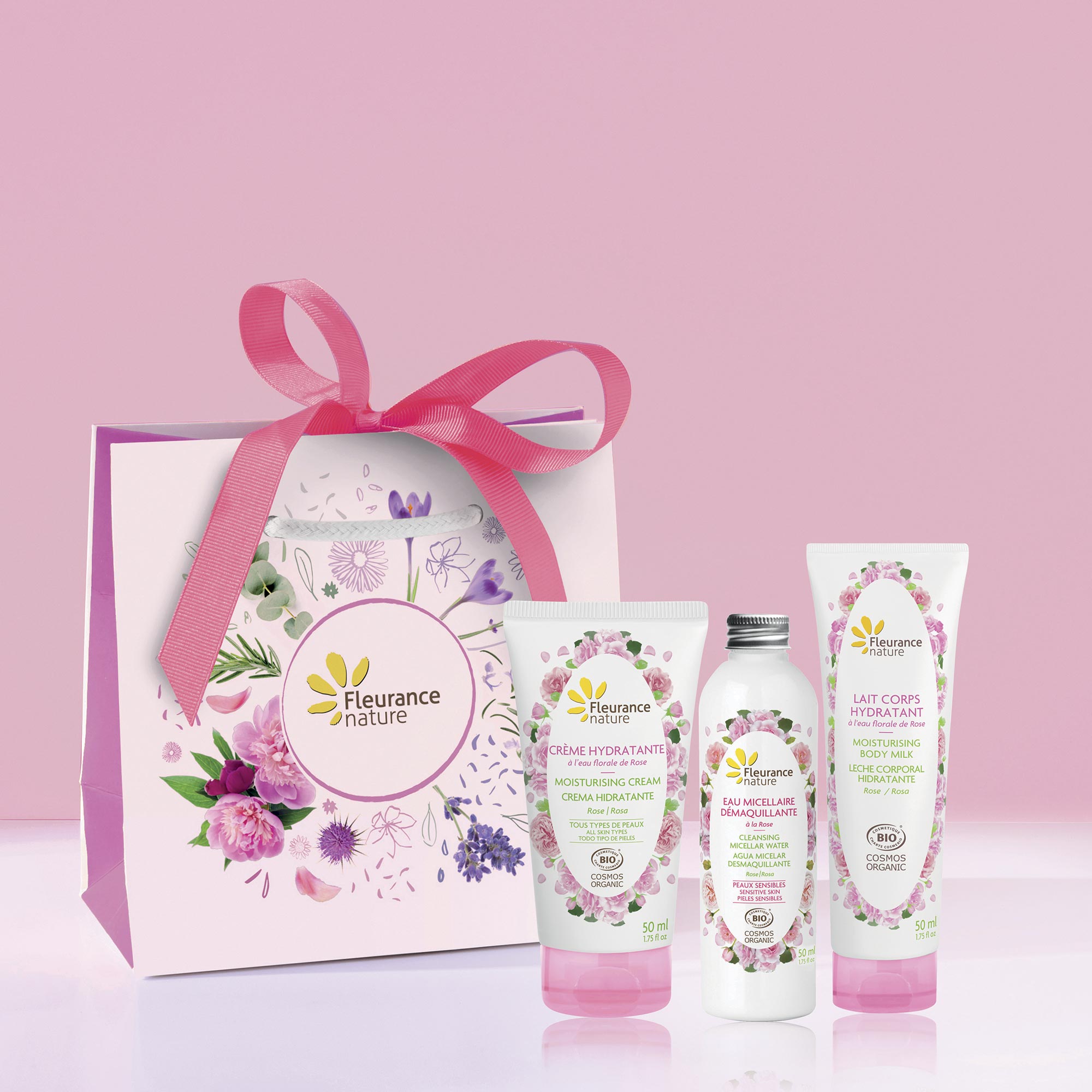 Retrouvez le subtil parfum de rose dans ce sac de 3 produits beauté contenant :